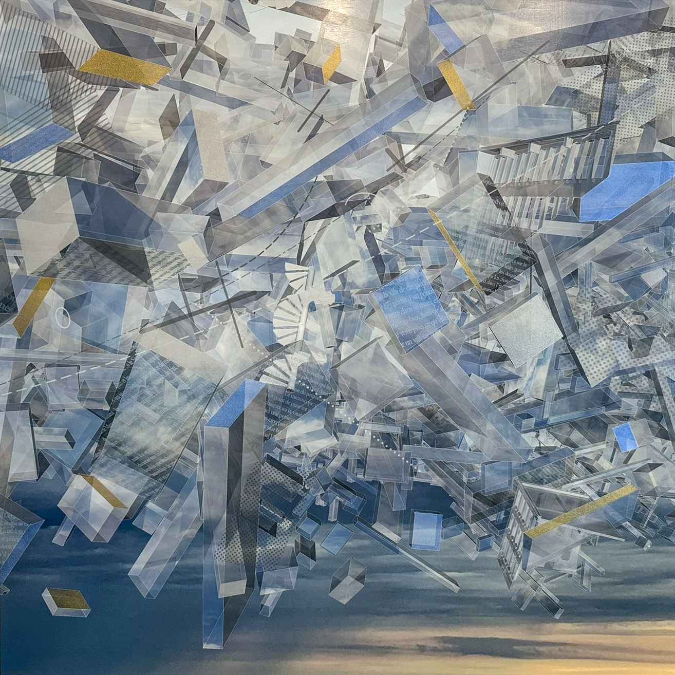“Steer Your Way” is another complex journey through the clouds. Dashed and dotted lines suggest planned or traveled paths.